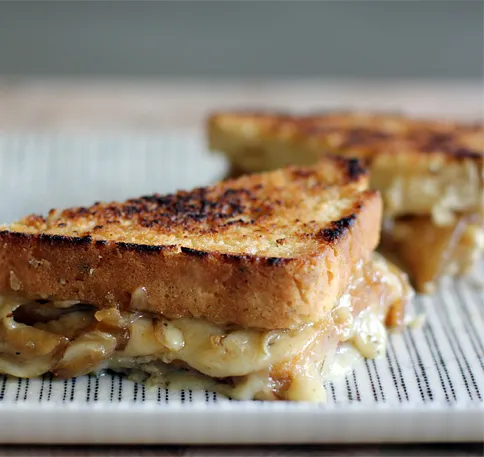 Gabrielle van Honest Fare deelt haar recept voor bierbrood waarmee ze een decadente gegrilde sandwich maakt, gemaakt met gekarameliseerde uien en Fontina en scherpe cheddarkaas.