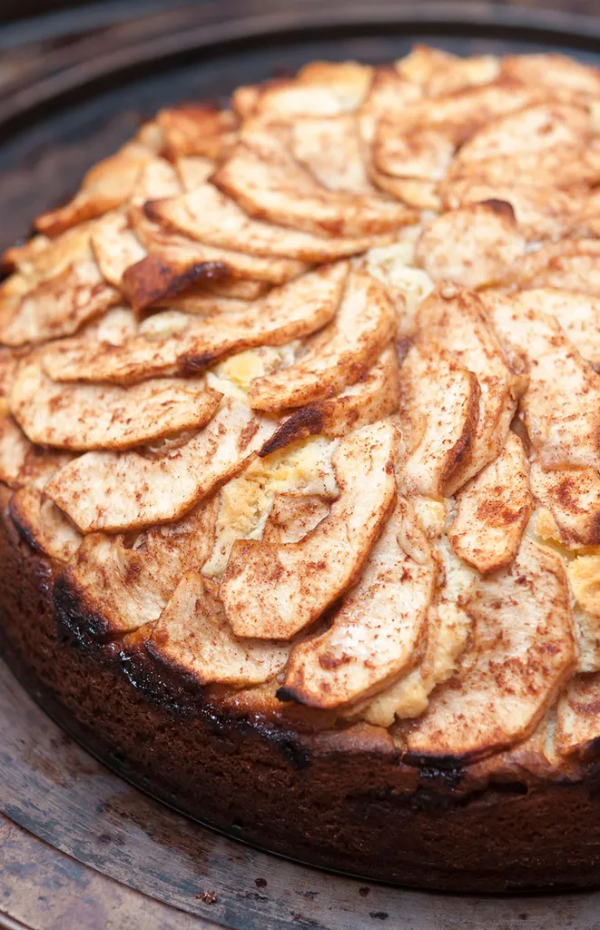 Ierse stevige gingersnapcake met weelderige chocoladetonen van het bier, omhuld met een bedwelmende rumglazuur en gegarneerd met warme gekarameliseerde appels.