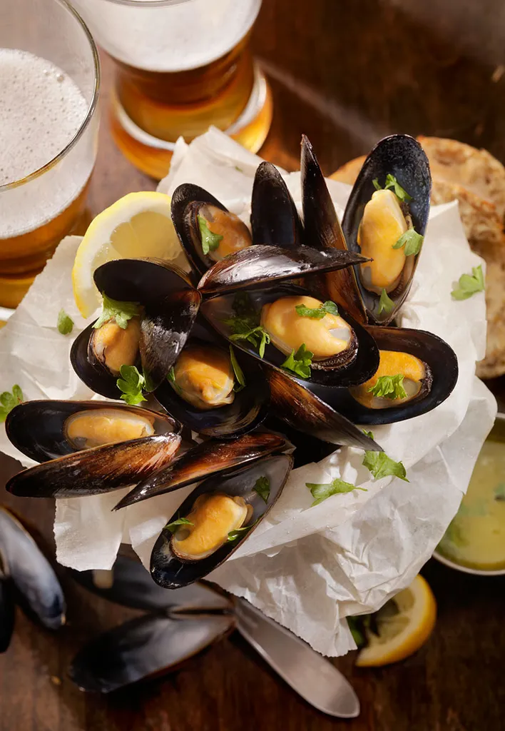 Het toevoegen van een American Pale Ale aan dit mosselrecept zorgt voor een heerlijke bitterheid en brengt de smaak van de schelpdieren naar voren.