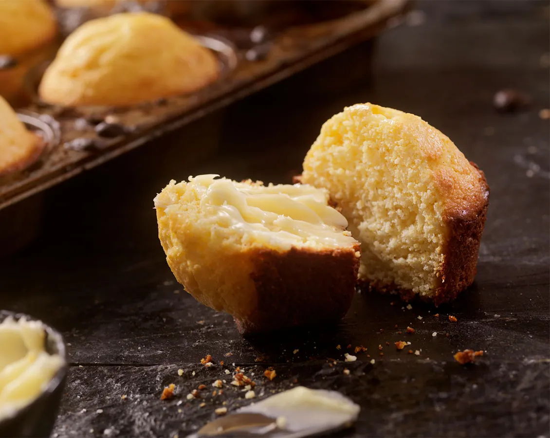 - *Optionele stap - met nog 5 minuten koken kun je gesmolten boter op de muffins strijken.