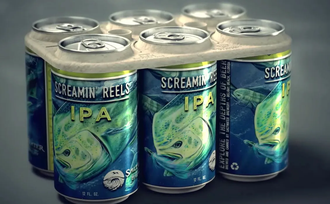 Nu kunnen bierliefhebbers in Zuid-Florida ze in het echt zien Zoutwaterbrouwerij six-packs samengebonden door de nieuwe duurzame verpakkingen die de komende weken in winkels in de buurt terechtkomen, waaronder Publix Whole Foods en ABC Liquors.