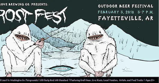Fossil Cove Brewing Co. en Apple Seeds Inc. brengen je Frost Fest op 3 februari 2018. Frost Fest is een viering van de ambachtelijke biergemeenschap en de winter in de Ozarks. Gepresenteerd door Fossil Cove Brewing Co. (Fayetteville AR) en ten voordele van Apple Seeds Inc. Frost Fest is het winterbierfestival van Arkansas. Dit is het derde jaar voor het op Fayetteville AR gebaseerde evenement met 40 brouwerijen uit Arkansas en de omliggende regio, artiesten en verkopers met livemuziek, foodtrucks. Frost Fest is het belangrijkste festival waar je ambachtelijk bier kunt bespreken en proeven met je favoriete brouwerijen. Bijwonende brouwerijen zullen ter plaatse vertegenwoordigers hebben die kennis uit de eerste hand over hun producten kunnen verstrekken voor een ongeëvenaarde bierdrinkervaring.