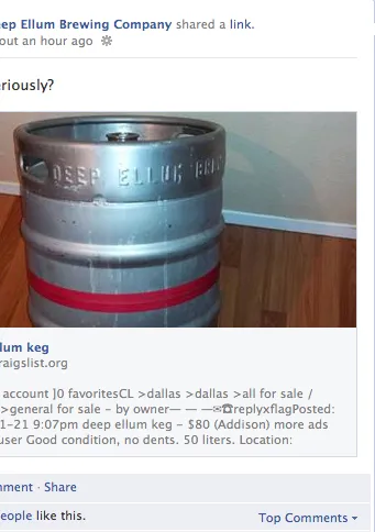 Daar gaan we weer! Deze keer heeft iemand een vat vermeld dat duidelijk eigendom is van Deep Ellum brouwerij